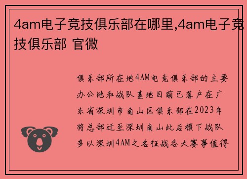 我查阅了相关资料,目前找到了关于 HI电竞俱乐部 的详细介绍,但暂时没有找到与“hhh电子竞技俱乐部”确切相关的官方信息。 下面这个表格整理了HI电竞俱乐部的主要信息,方便你快速了解:乐天使fun88 | 类别 | 具体信息 | | :-- | :-- | | 俱乐部名称 | HI电竞俱乐部 | | 前身战...